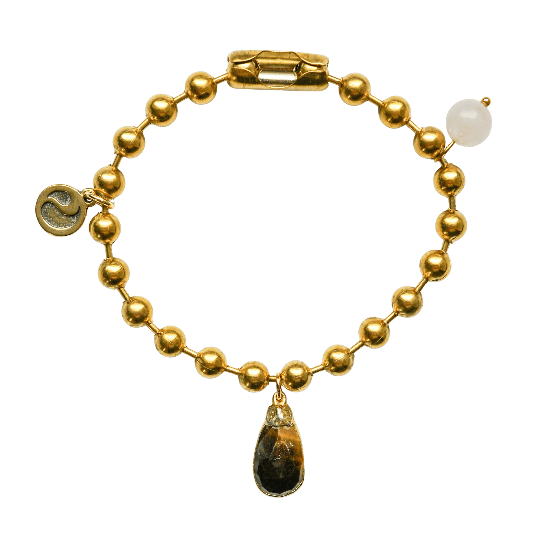Gold Charm Bracelet with Rose Quartz & Tiger's Eye