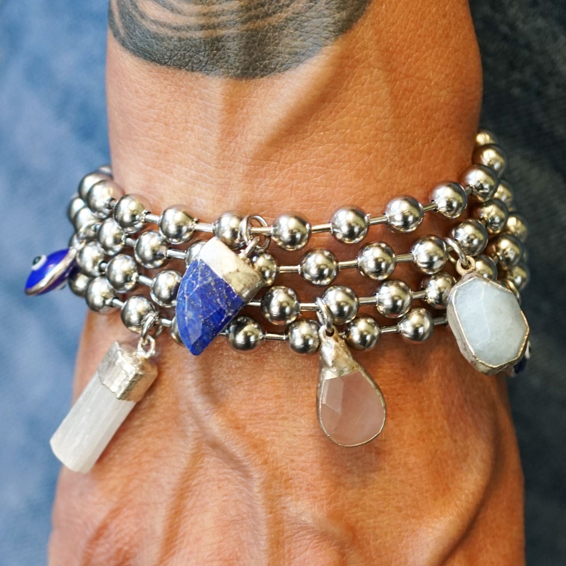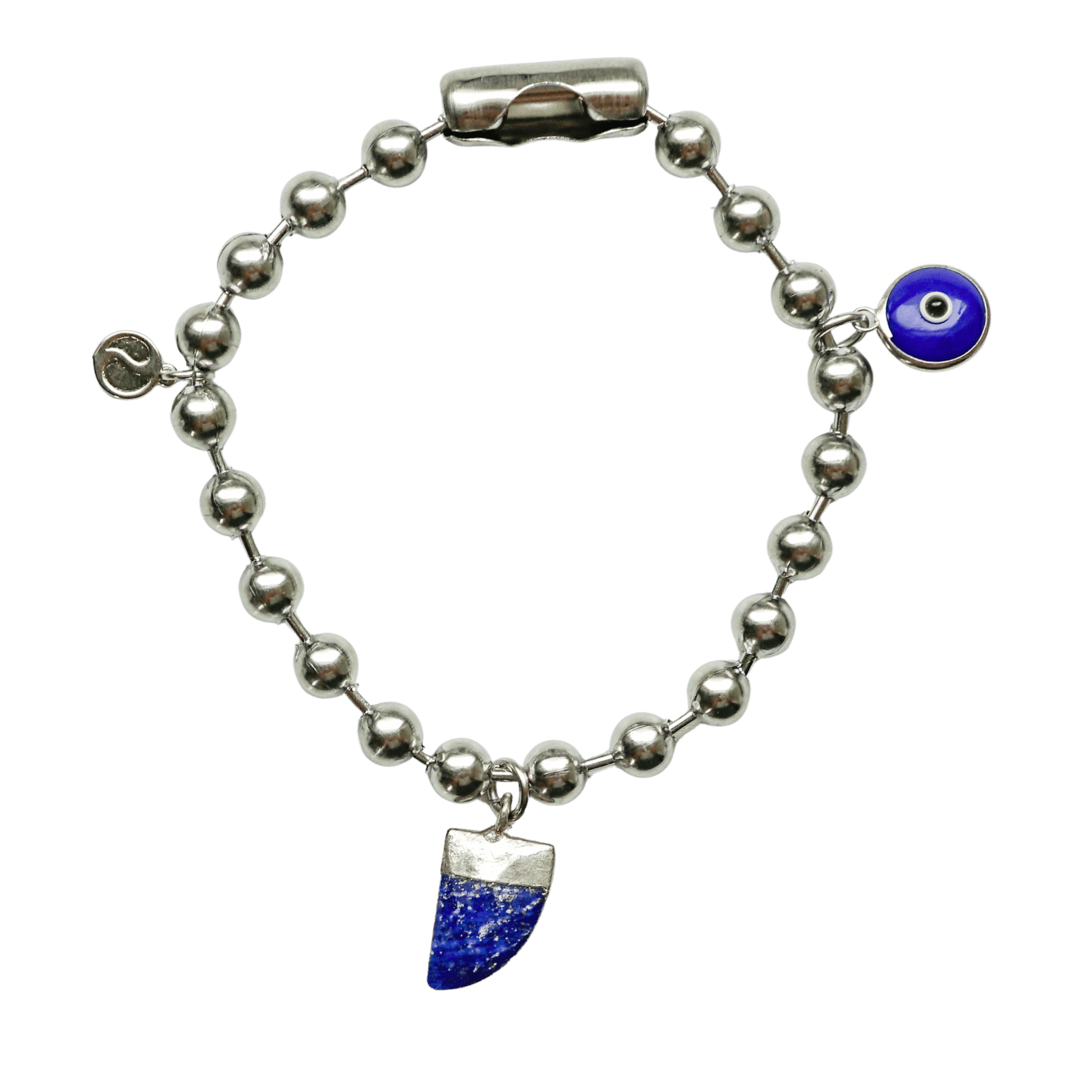 Silver Charm Bracelet with Sodalite & Blue Evil Eye