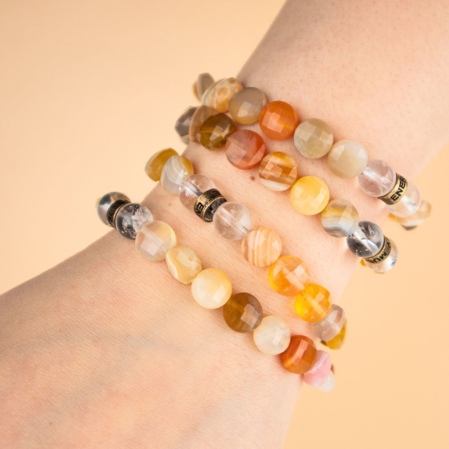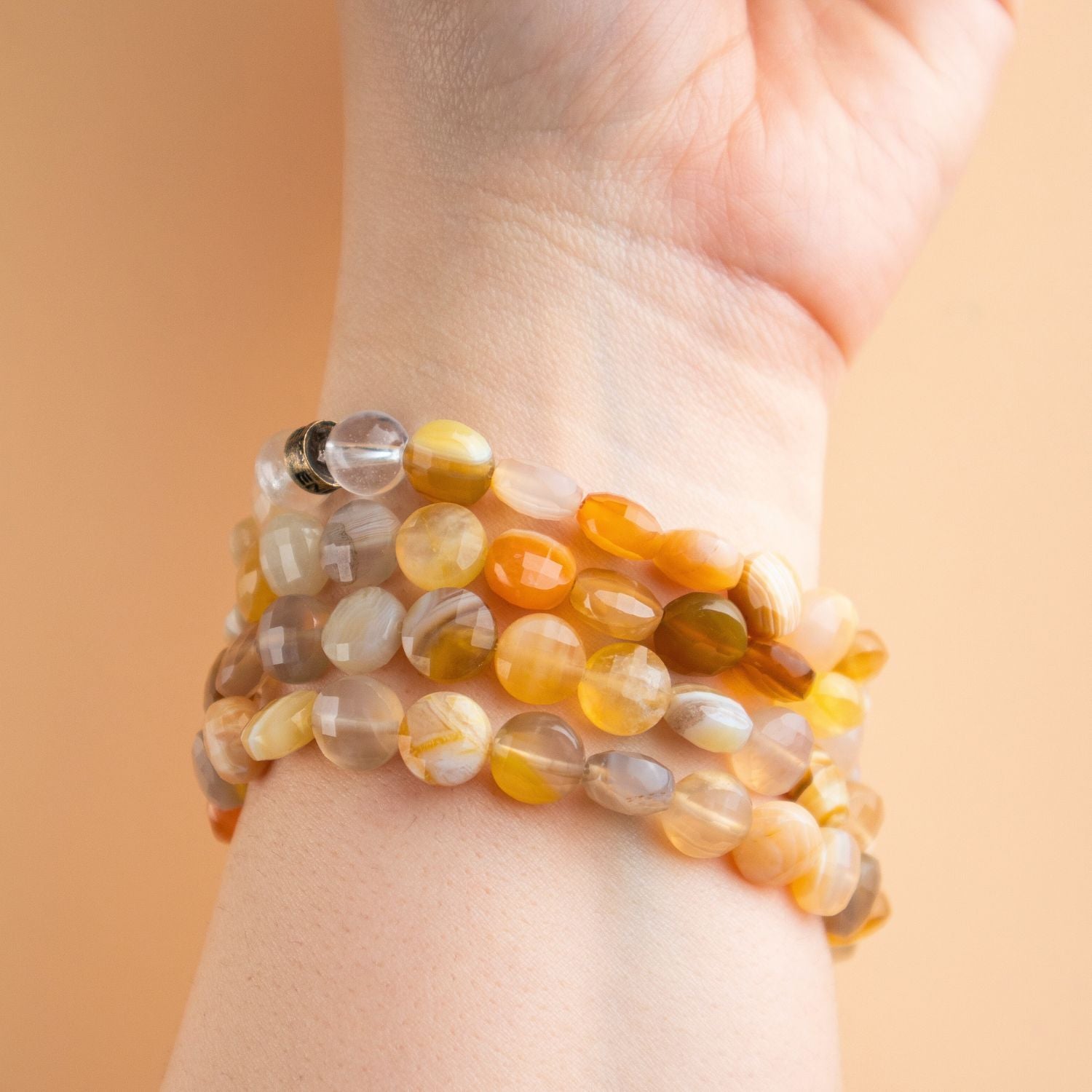 Unlock the exclusive crystal code, embody resilience, and radiate joy with the Yellow Botswana Agate bracelet.